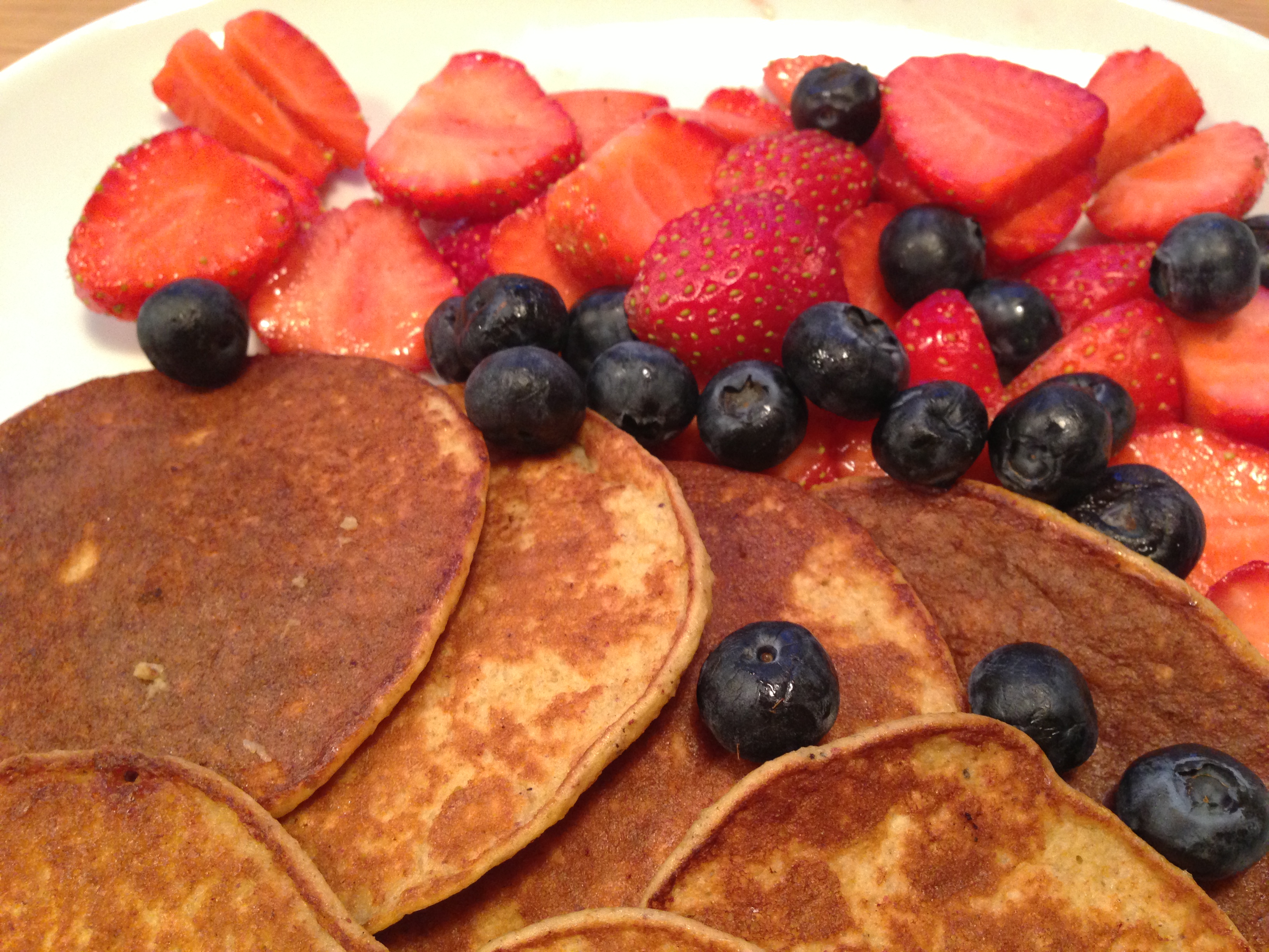 Fråts i lune pannekaker, friske bær eller mango og en dæsj vaniljeyoghurt. Eventuelt, lek deg bort og spis morsomme pannekaker som sannsynligvis har blitt kalde.