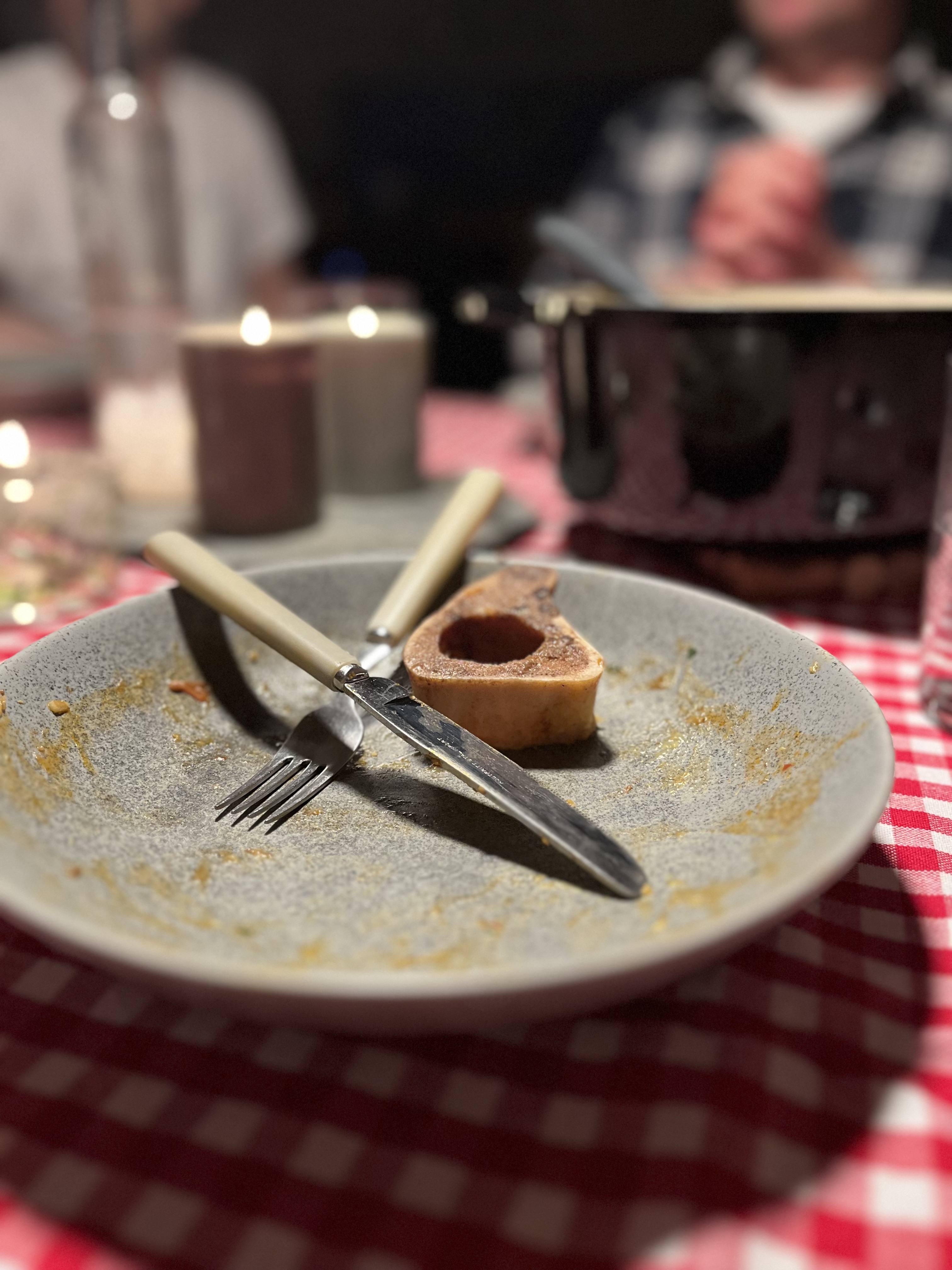- 7 dl fond eller kraft, vi brukte kalvefond