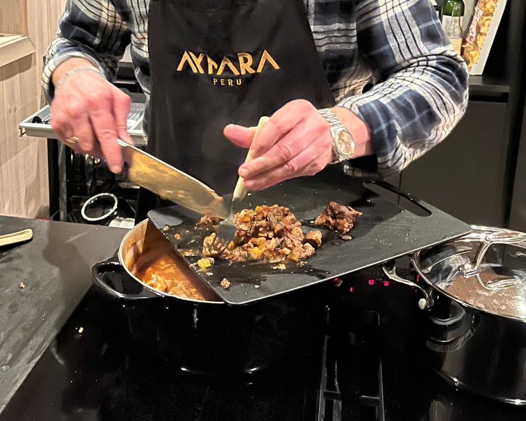 - Ta oksehalene opp av gryta og brun grønnsakene i samme gryte.