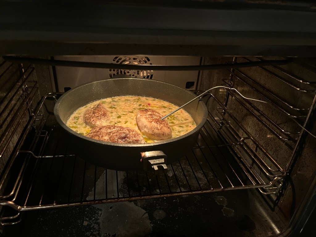 - Varm oljen i en dyp stekepanne som tåler å settes i ovnen