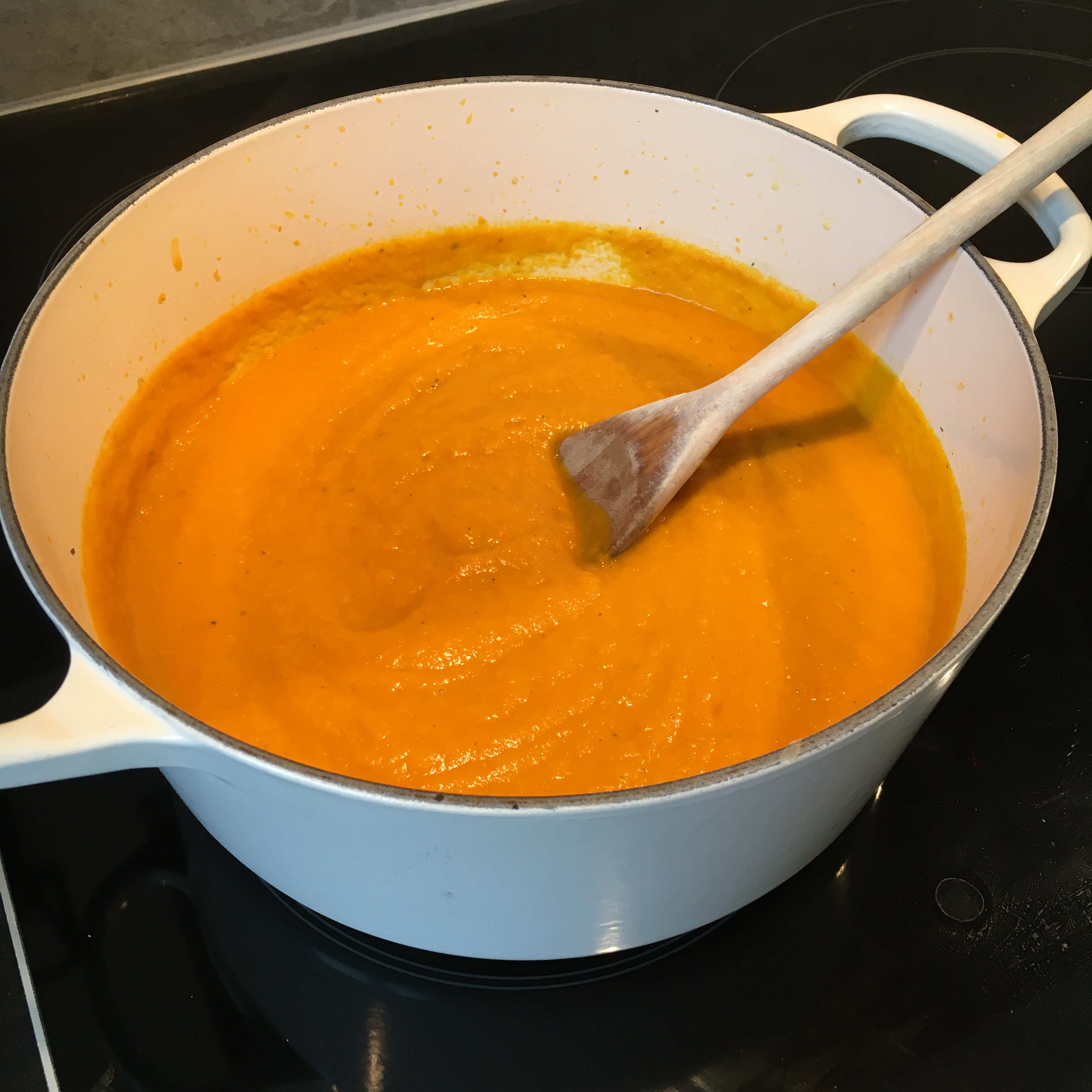 - Bruk stavmikser, og kjør det til en jevn, tykk suppe