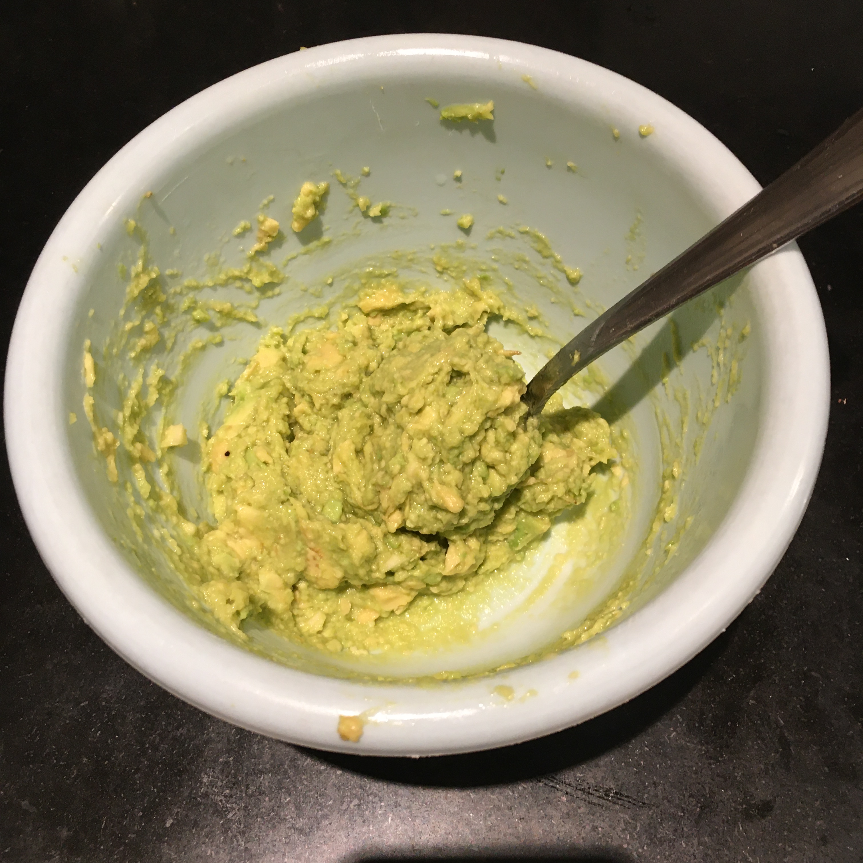 - Lag guacamole av 1 avokado, 1 ts limesaft, 1 fedd finhakket hvitløk, en klype salt og 1 ss god olivenolje.