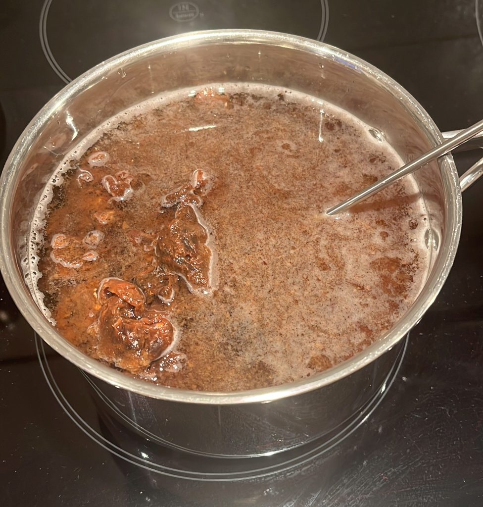 - Kok den opp i 5 dl vann – men ikke la den koke. Bruk en visp til å løse den opp