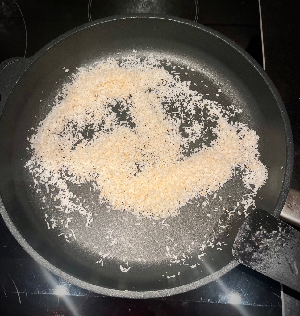 - 40-50 g ristet revet kokos (vanlig revet kokos, sånn som man bruker til skolebrød)