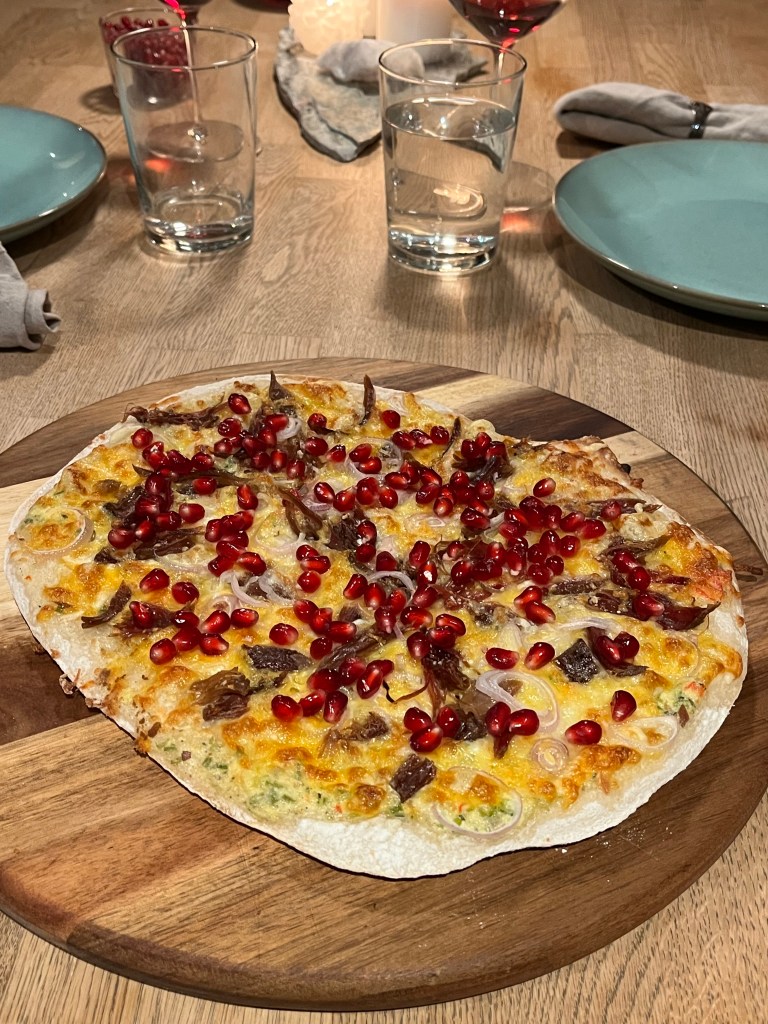 «Pizzaen vår» er et begrep hvor innholdet har endret seg med årene, men det betyr til enhver tid noe bra! I starten var vi superfornøyde med å lage deigen SELV, og absolutt ikke alltid. Deretter dukket det opp en pizzastein, en gassgrill og Tipo 0-mel, og plutselig ble favorittpizzaen i tillegg luftig og krisp. Så tøffet vi oss enda mer, og begynte å ta oss tid til «Trines grunnoppskrift 2″ – den med starter. Og nå hvis vi jammen landet på Schakenda (Bakeriet i Lom) sin enda litt mer tidkrevende pizzabunn. Man skal heldigvis ikke gjøre så mye selv med denne bunnen, annet enn å være hjemme. Og begynne i tide.