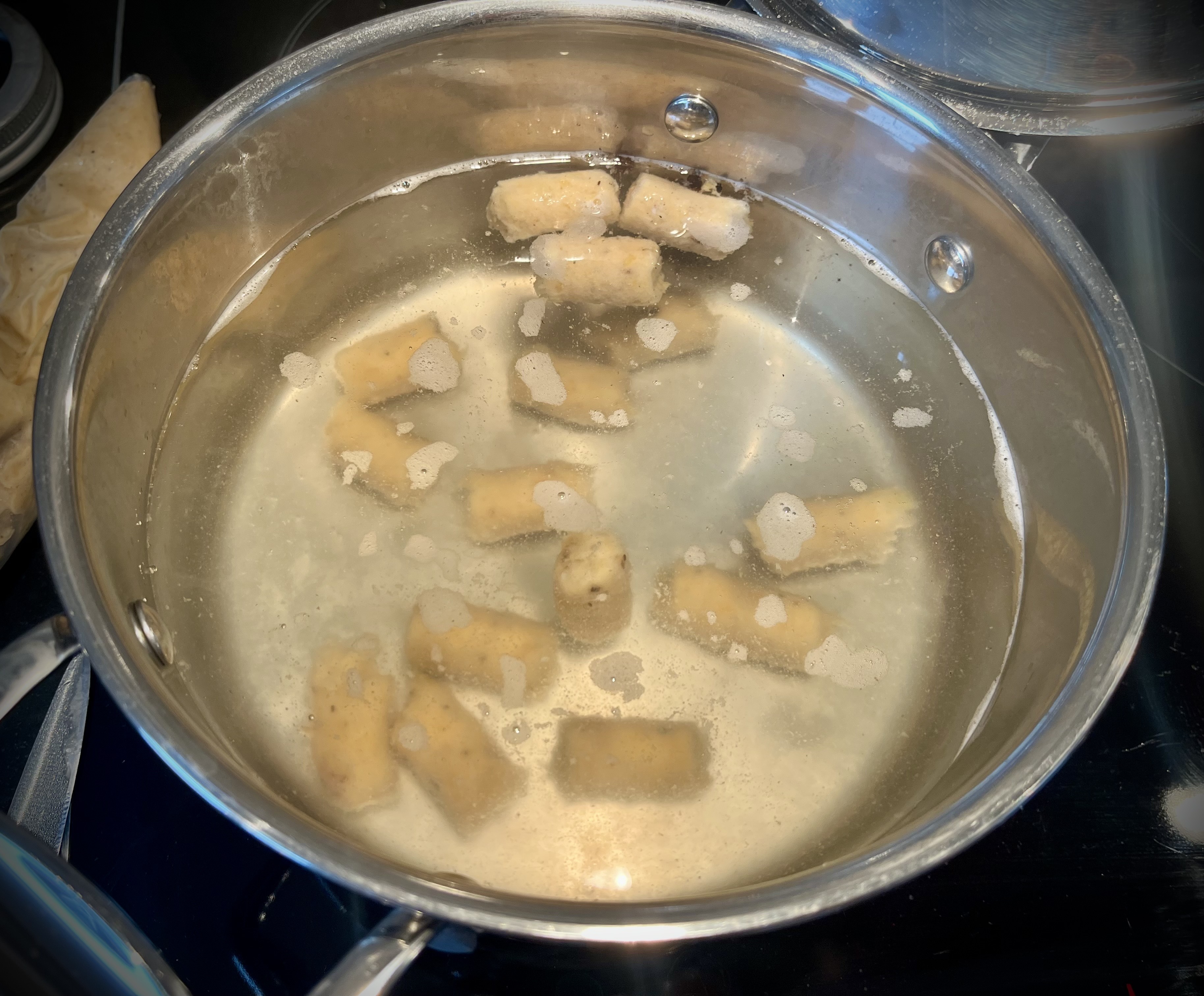 - Kok gnocchien – enten butikkkjøpt eller hjemmelaget i 2-3 omganger så det ikke blir for fullt