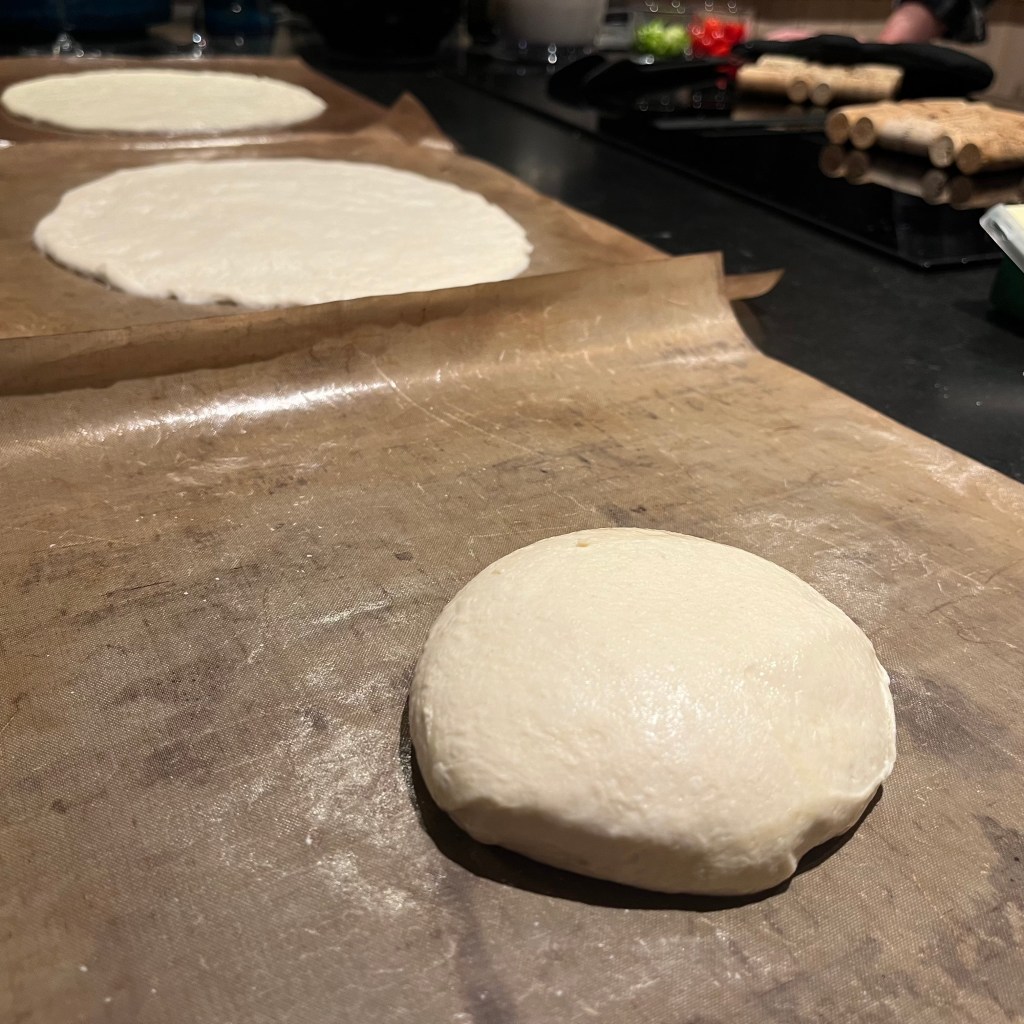 - Ta deigene ut 1–2 timer før pizzaene skal stekes, så de rekker å etterheve på kjøkkenbenken.