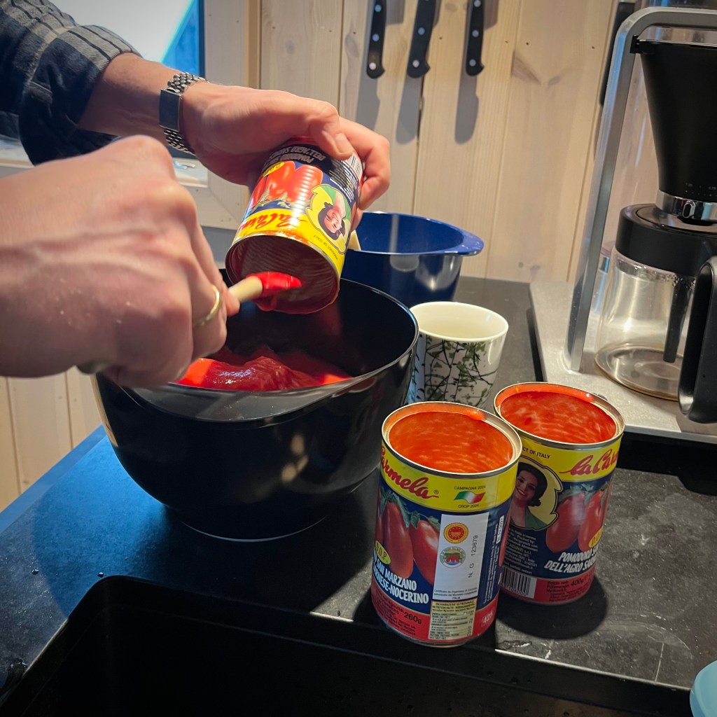 - 3 bokser eller glass San Marzano tomater. De er dyrere, men de er verdt det!