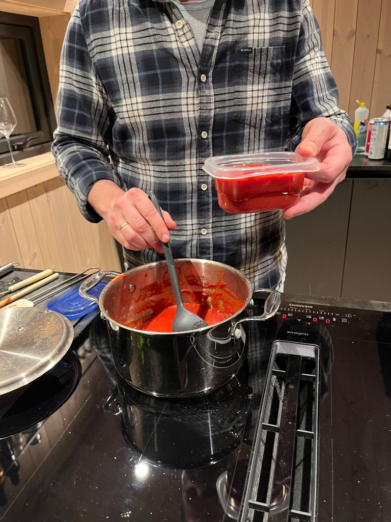 Tomatsausen er super å fryse ned, så lag mer enn du trenger når du først er i gang, og frys ned det du ikke bruker i porsjonspakker så de er lette å ta fram neste gang du skal ha pizza.
