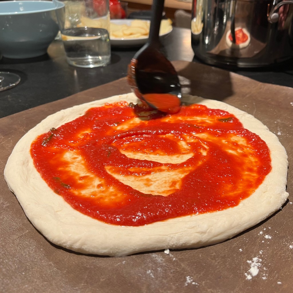 Jadda, ikke før vi trodde at vi hadde makset det som kunne makses med pizza, testet vi å lage bunn med surdeig sammen med Gladkokken sin napolitanske pizzasaus. Tenk at vår allerede kjempegode pizza kunne bli enda bedre! Og forsåvidt at allerede tidkrevende pizza kunne ta enda lengre tid.